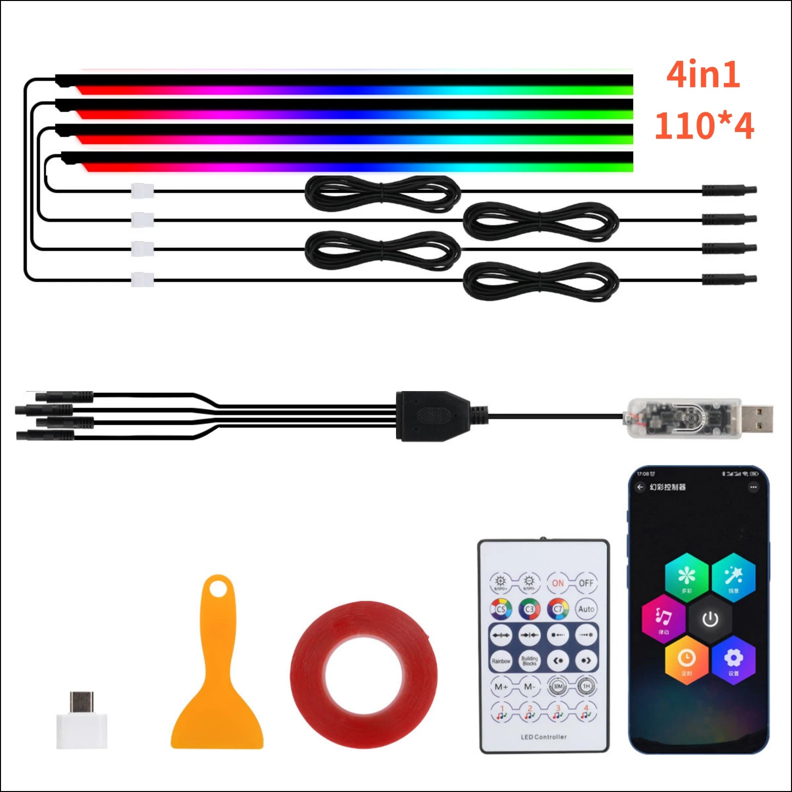 Die Streifen werden über ein USB-Kabel mit dem Auto verbunden, was eine einfache und schnelle Installation ermöglicht.